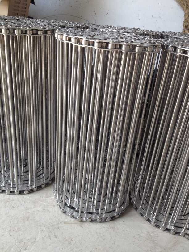 鏈桿輸送帶:一種輸送帶,采用金屬圓棒車(chē)臺(tái),兩邊鑲上鏈條做成的輸送帶。鏈桿輸送帶兩邊的鏈條可以做成6.35毫米,9.525毫米,12.7毫米,15.875毫米,19.05毫米,25.4毫米,31.75毫米,38.1毫米,50.8毫米,63.5毫米,76.2毫米,101.6毫米等等。