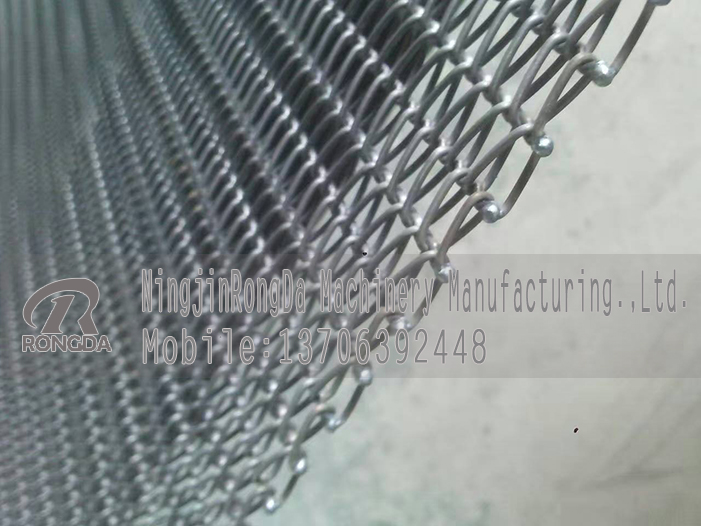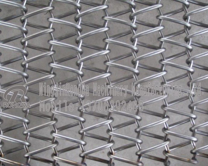 A Balance weave's constuction is an alternating right and left hand spirals that do not interconnect with each other. They are joined by a crimped rod which holds each spiral in place. The rods connecting the spirals are can be of a larger diameter than the spiral wires, adding durability to the construction. The spiral seats on the crimped connecting rod, allowing the belt to run straight and true. The belt will not creep to either side.