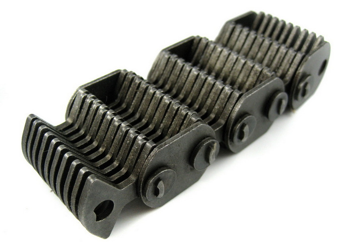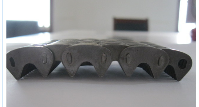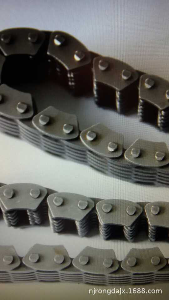 HV416-96l哈瓦鏈條:一種雙軸的齒形鏈條,軸是兩根用,在一個(gè)鏈條孔里面有兩個(gè)瓦片銷軸。下圖是HV416齒形鏈條。有5個(gè)導(dǎo)向片,60個(gè)帶尖的齒形鏈片,長度106.5毫米,2500元一條。