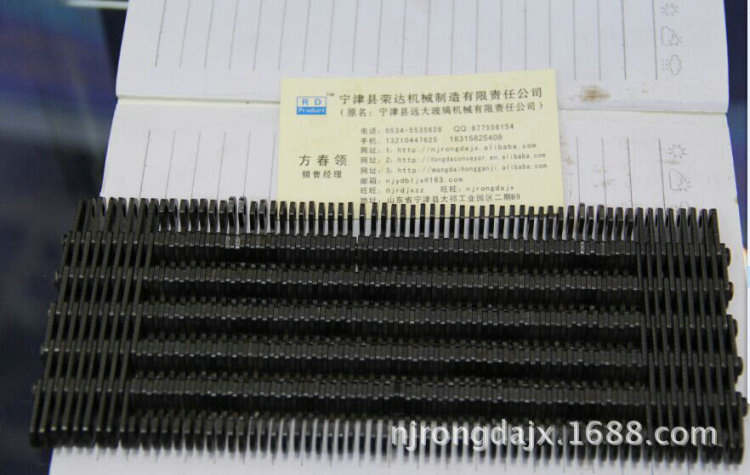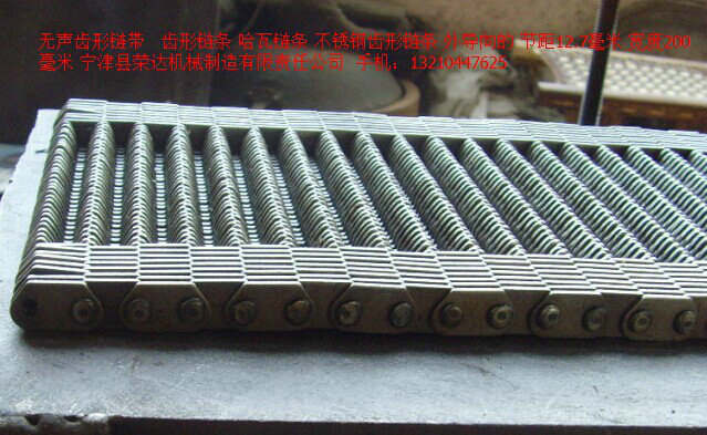 寧津縣榮達(dá)機(jī)械制造有限責(zé)任公司銷售無(wú)聲齒形鏈條,無(wú)聲齒形鏈帶,配套與美國(guó)EMHART和意大利BOTTERO行列式制瓶機(jī)上。用來(lái)輸送玻璃制品,玻璃瓶子,玻璃罐,玻璃容器等等。