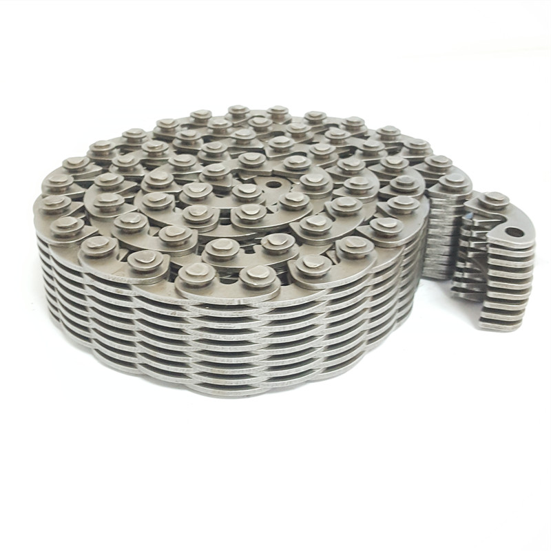 齒形鏈?zhǔn)且环N應(yīng)用廣泛的重要機(jī)械基礎(chǔ)件,主要用在高速、重載、低噪音、大中心距的工況下,其傳動(dòng)性能優(yōu)于齒形帶傳動(dòng)、齒輪傳動(dòng)以及滾子傳動(dòng),以成為眾多行業(yè)首選對(duì)傳動(dòng)形式之一,以嚙合形式分可分為內(nèi)嚙合齒形鏈、外嚙合齒形鏈和內(nèi)外復(fù)合嚙合齒形鏈,其中內(nèi)外復(fù)合嚙合齒形鏈的噪音最小,應(yīng)用也最廣泛。