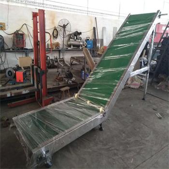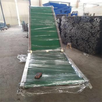 不銹鋼大架皮帶提升機 綠色皮帶機。給河北客戶制造的皮帶機。不帶電機的,水平段長1.5米,提升角度37度,提升高度2米,水平段高度350毫米,皮帶厚5毫米,帶橫擋板,橫擋板間距400毫米,橫擋板有效高度20毫米。