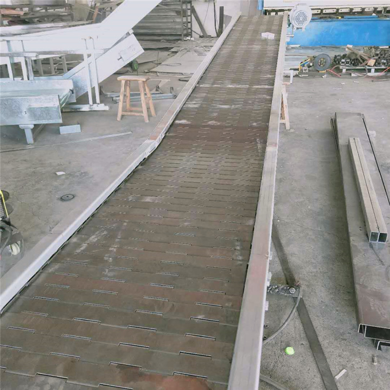給客戶定做的鏈板輸送機(jī),長度7.5米 寬度50公分 一頭 高度1.1米 另一頭80公分 一般速度。工期4天。