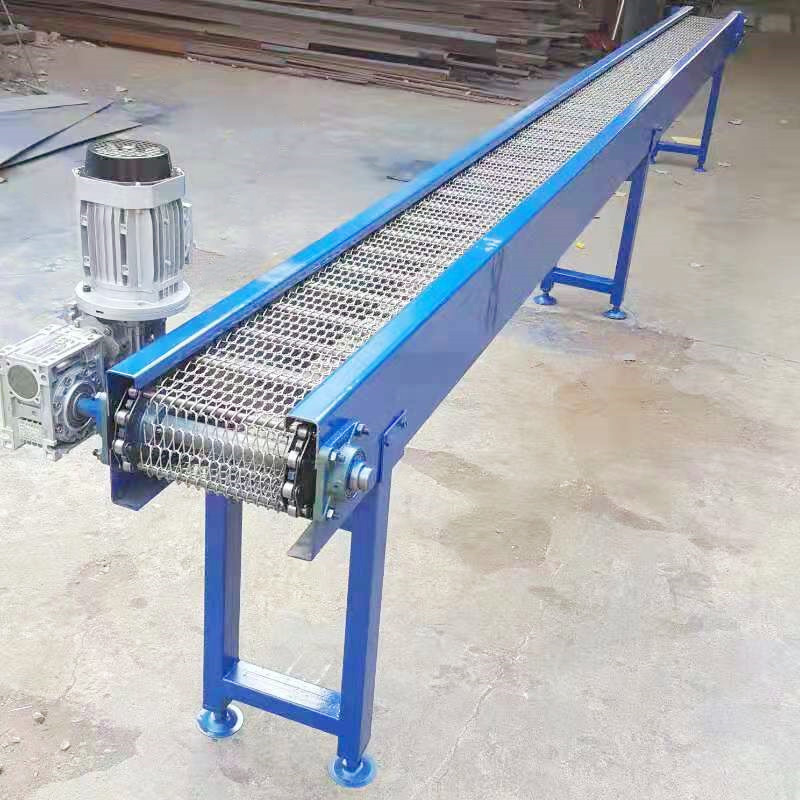 鏈條式網(wǎng)帶由一般的輸送網(wǎng)帶兩側(cè)加裝鏈條及橫向支撐桿而成,鏈輪傳動(dòng),網(wǎng)帶寬帶固定不變形。調(diào)整網(wǎng)帶不同的節(jié)距,即可安裝不同形式的鏈條,容易安裝網(wǎng)帶的附屬配件,如擋板,側(cè)翼。。。。。網(wǎng)面平整,可承載較重的壓力和拉力,通風(fēng)透氣性能好,節(jié)能環(huán)保,網(wǎng)面潔凈無毒,而且容易清洗,維修和拆卸極為方便,鏈條式網(wǎng)帶被廣泛用于食品速凍,蔬菜除沙,清洗殺菌,殺菌預(yù)煮,烘烤,干燥,電子行業(yè)生產(chǎn)線。