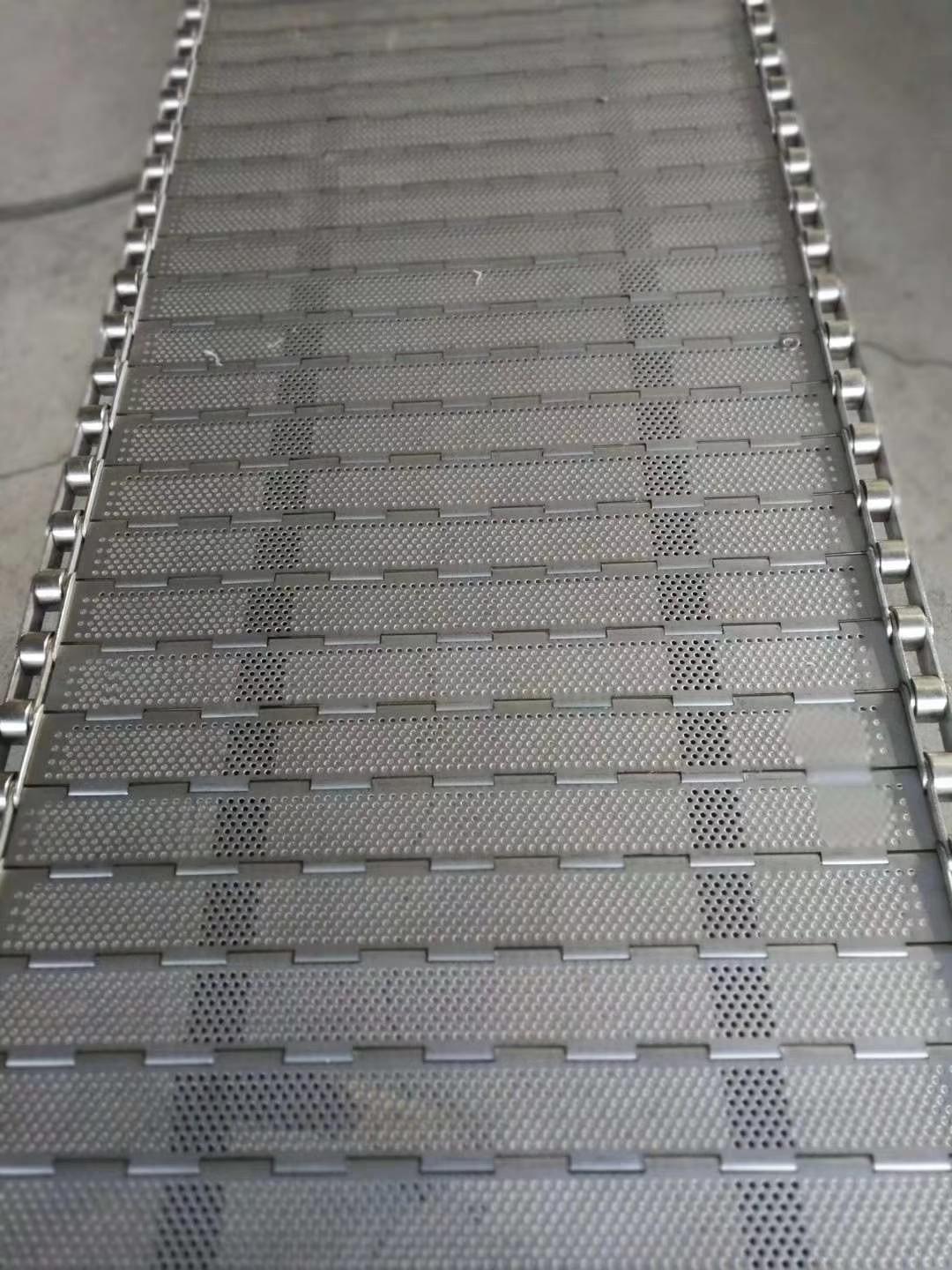2,根據(jù)外形來分:平鏈板輸送帶,帶橫擋板鏈板輸送帶,帶擋邊鏈板輸送帶,沖孔鏈板輸送帶(圓孔,長條孔),帶凸起鏈板輸送帶。