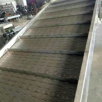 1,如果輸送機(jī)是提升機(jī),是傾斜爬坡輸送機(jī),輸送的時候帶角度提升輸送,盡量在輸送帶上加上橫擋板,在輸送帶上加上防滑隔板。