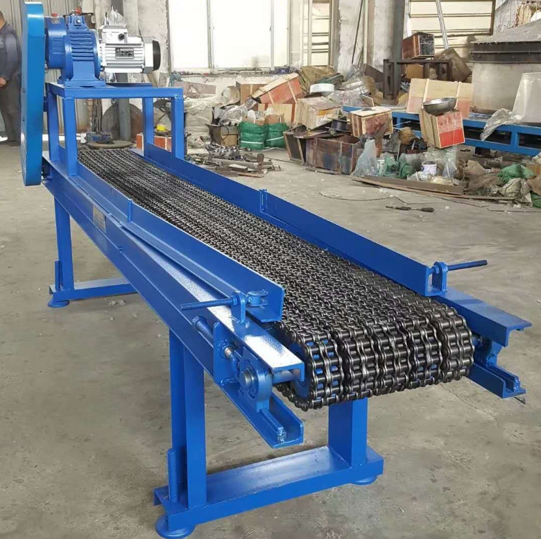 在鍛造行業(yè),鍛打件,熱鍛壓件的傳送現(xiàn)在都采用鏈條式輸送機,鏈板式輸送機,隔板槽鋼板輸送機。采用耐熱鋼平板或者耐熱鋼多排鏈條,來完成燒紅的鐵件的輸送,傳送,運輸。