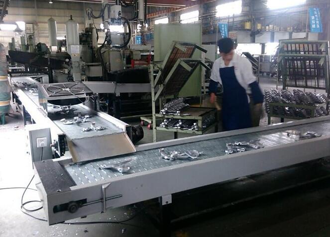 輸送機的鏈板材質(zhì)有:碳鋼、304不銹鋼等材質(zhì),主要用與壓鑄機周邊設(shè)備,上面裝有冷卻風(fēng)機,線體的長度與寬帶根據(jù)客戶產(chǎn)品而定。除了輸送壓鑄產(chǎn)品,還可滿足耐油、耐腐蝕等有特殊要求物料的輸送??蓾M足食品、制藥、日用化工、電子電器等行業(yè)的要求。