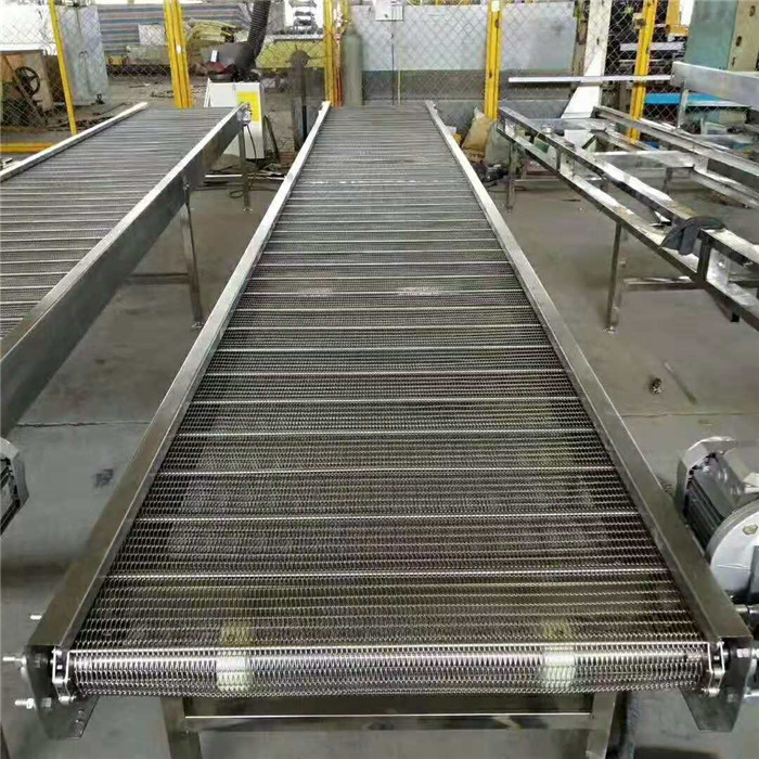 網(wǎng)鏈輸送機(jī) 該輸送機(jī)用于物料的輸送。采用不銹鋼網(wǎng)帶作為載體,適用于各種食品行業(yè)的烘干、去濕、冷凍等、熱處理等;不銹鋼制成,具有耐高溫、便于清洗等特點(diǎn)。