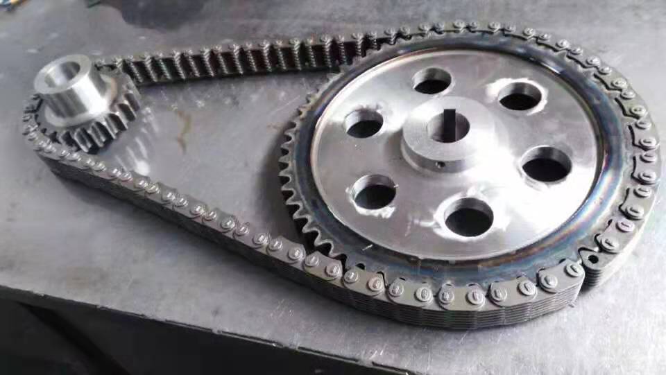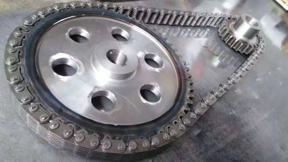 無聲鏈 齒形鏈輪 無聲鏈:也叫齒形鏈條,采用無聲齒形鏈輪帶動運轉(zhuǎn)傳動。寧津縣榮達機械制造有限責任公司定做各種無聲齒形鏈條,無聲齒形鏈輪。我們根據(jù)客戶自己的情況,客戶選型成功,我們根據(jù)客戶的數(shù)據(jù)非標定做各種齒形鏈條和無聲齒形鏈輪。齒形鏈條節(jié)距4.7625,6.35 9.525 12.7 15.875 19.05 25.4 31.75 38.1毫米的鏈條都能做,無聲齒形鏈輪根據(jù)客戶的齒數(shù)和外徑,內(nèi)孔,鍵槽定做。無聲齒形鏈條的獨特優(yōu)點:高速,無噪音,高承載傳動能力,轉(zhuǎn)矩大等等優(yōu)點,逐漸取代精密滾子鏈條和同步帶。