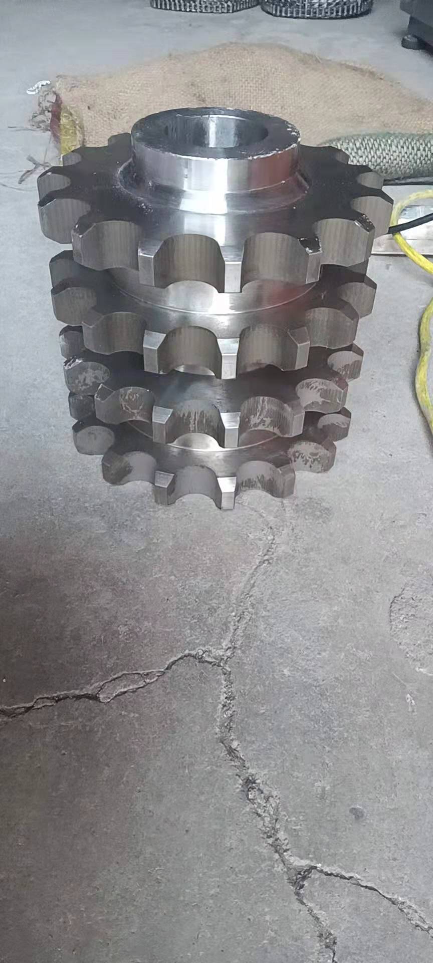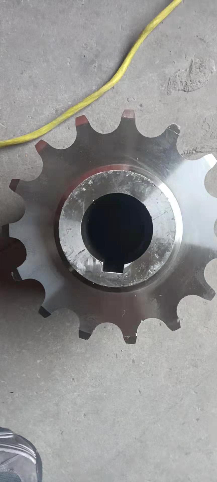 廠家直銷不銹鋼鏈輪的結(jié)構(gòu):鏈輪一種帶嵌齒式扣鏈齒的輪子,用以與節(jié)鏈環(huán)或纜索上節(jié)距準(zhǔn)確的塊體相嚙合。鏈輪被廣泛應(yīng)用于化工、紡織機(jī)械、食品加工、儀表儀器、石油等行業(yè)的機(jī)械傳動(dòng)等。鏈輪結(jié)構(gòu)設(shè)計(jì):1、鏈輪的齒形鏈輪齒形必須保證鏈節(jié)能平穩(wěn)自如地進(jìn)入和退出嚙合,盡量減少嚙合時(shí)的鏈節(jié)的沖擊和接觸應(yīng)力,而且要易于加工。它是由三段圓弧aa、ab、cd和一段直線bc構(gòu)成,簡(jiǎn)稱三圓弧-直線齒形。齒形用標(biāo)準(zhǔn)刀具加工,在鏈輪工作圖上不必繪制端面齒形,只需在圖上注明"齒形按3RGB1244-85規(guī)定制造"即可,但應(yīng)繪制鏈輪的軸面齒形,其尺寸參閱有關(guān)設(shè)計(jì)手冊(cè)。2、鏈輪結(jié)構(gòu)小直徑鏈輪一般做成整體式,中等直徑鏈輪多做成輻板式,為便于搬運(yùn)、裝卡和減重,在輻板上開孔,大直徑鏈輪可做成組合式,此時(shí)齒圈與輪芯可用不同材料制造。例如C45,不銹鋼等材料。3、鏈輪材料鏈輪材料應(yīng)保證輪齒有足夠的強(qiáng)度和耐磨性,故鏈輪齒面一般都經(jīng)過熱處理,使之達(dá)到一定硬度。