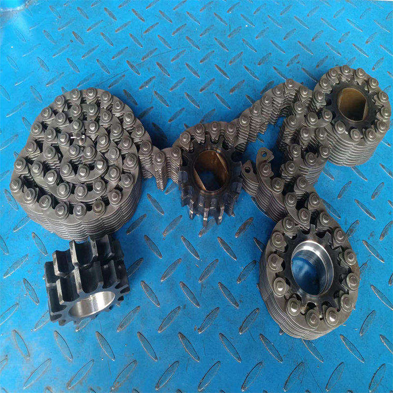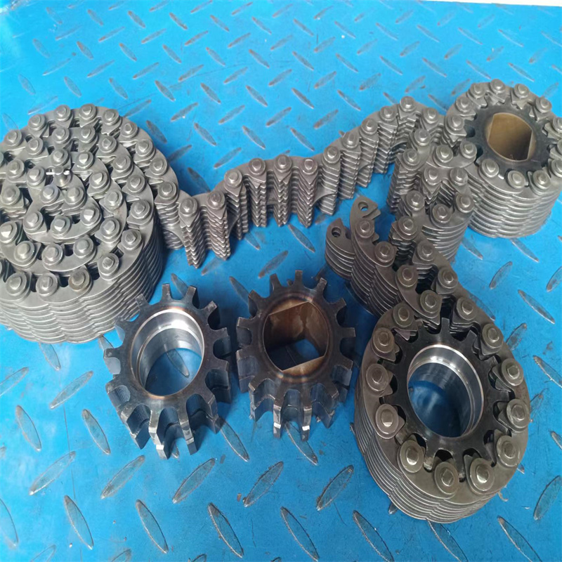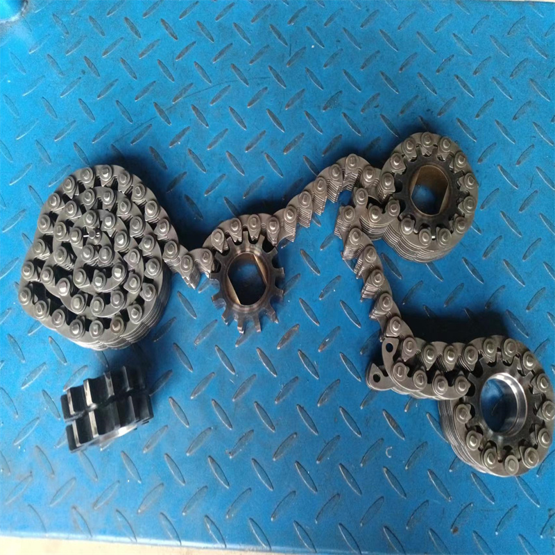 無(wú)聲鏈 齒形鏈輪 無(wú)聲鏈:也叫齒形鏈條,采用無(wú)聲齒形鏈輪帶動(dòng)運(yùn)轉(zhuǎn)傳動(dòng)。寧津縣榮發(fā)齒輪廠定做各種無(wú)聲齒形鏈條,無(wú)聲齒形鏈輪。我們根據(jù)客戶自己的情況,客戶選型成功,我們根據(jù)客戶的數(shù)據(jù)非標(biāo)定做各種齒形鏈條和無(wú)聲齒形鏈輪。齒形鏈條節(jié)距4.7625,6.35 9.525 12.7 15.875 19.05 25.4 31.75 38.1毫米的鏈條都能做,無(wú)聲齒形鏈輪根據(jù)客戶的齒數(shù)和外徑,內(nèi)孔,鍵槽定做。無(wú)聲齒形鏈條的獨(dú)特優(yōu)點(diǎn):高速,無(wú)噪音,高承載傳動(dòng)能力,轉(zhuǎn)矩大等等優(yōu)點(diǎn),逐漸取代精密滾子鏈條和同步帶。