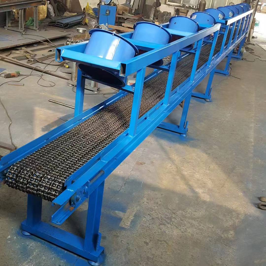輸送鏈 鍛造自動(dòng)化輸送鏈 傳送鍛壓輸送機(jī),鍛打輸送機(jī),熱鍛紅沖輸送機(jī),鍛造熱處理淬火提升機(jī),熱鍛造件降溫風(fēng)冷輸送機(jī) 鏈條輸送機(jī) 鏈板輸送機(jī) 板式提升機(jī) 鏈條片輸送機(jī) 帶風(fēng)機(jī)降溫輸送機(jī) 滾筒輸送機(jī) 熱鍛造件輸送機(jī):是用于鍛造行業(yè),用來輸送鍛造件的一種傳送帶,可以用于輸送圓鋼,加熱爐出來的紅毛坯,紅熱方鋼圓鋼,用于各個(gè)鍛壓機(jī)之間鍛件的輸送,用于水槽油槽鍛造件的熱處理淬火,用于熱鍛造件的風(fēng)冷水冷降溫輸送。鍛造生產(chǎn)線的各個(gè)輸送傳送。 功能特點(diǎn) 1.速度快慢可調(diào),有無極調(diào)速電機(jī)和變頻器控制柜控制速度快慢,操作簡(jiǎn)單 2,輸送速度快,精密鏈條適合高速傳送,耐磨,適合長(zhǎng)時(shí)間高速運(yùn)轉(zhuǎn)傳送 3,輸送機(jī)可連續(xù)輸送,可間歇性輸送。 4,輸送機(jī)的寬度根據(jù)被輸送的金屬件的大小靈活的設(shè)計(jì)輸送機(jī)的寬度 長(zhǎng)度根據(jù)輸送的距離來設(shè)計(jì)。5,輸送機(jī)可以做成水平直輸送的,提升爬坡輸送的。第一集:輸送鏈 耐高溫傳送鏈條 鍛造輸送鏈 鍛造輸送機(jī) 鍛造輸送鏈 冷卻鏈 降溫輸送鏈 熱鍛造輸送鏈 鍛造輸送鏈具有耐高溫、不變形等特點(diǎn),且重量輕而強(qiáng)度大,耐磨性好,抗沖擊力強(qiáng),維護(hù)性好等優(yōu)勢(shì)。榮達(dá)擁有單排輸送鏈、雙排輸送鏈、串桿輸送鏈、板鏈輸送鏈、網(wǎng)鏈輸送鏈等不同形態(tài)的產(chǎn)品。根據(jù)不同類型的產(chǎn)品,工藝方式的不同,滿足客戶的各種不同應(yīng)用場(chǎng)景需求。 榮達(dá)機(jī)械可以根據(jù)客戶的使用要求和現(xiàn)場(chǎng)安裝的需要,設(shè)計(jì)、制造各種規(guī)格的產(chǎn)品和設(shè)備,為客戶提供合理價(jià)格的優(yōu)質(zhì)產(chǎn)品。1,耐高溫2,耐磨性好 3,運(yùn)行穩(wěn)定4,抗沖擊力強(qiáng) 5,類型多并可定制