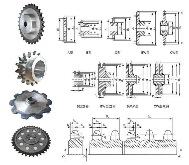 鏈輪介紹:鏈輪是一種帶嵌齒式扣鏈齒的輪子,用以與節(jié)鏈環(huán)或纜索上節(jié)距準確的塊體相嚙合。鏈輪被廣泛應(yīng)用于化工、紡織機械、自動扶梯,木材加工,立體停車庫,農(nóng)業(yè)機械,食品加工、儀表儀器、石油等行業(yè)的機械傳動等。